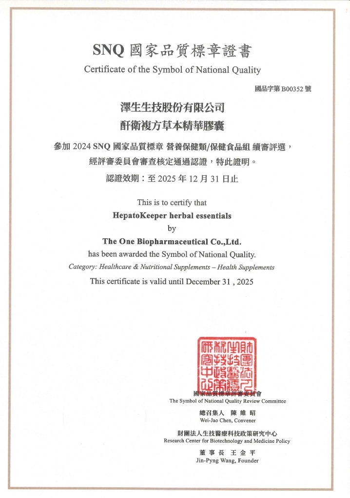酐衛複方草本精華膠囊榮獲2024年SNQ國家品質標章認證!